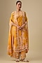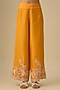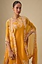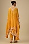 Featuring a yellow one-shoulder kurta in dupion silk. It is paired with a silk pants and an organza butterfly cape. Accentuate it with statement earrings and block heels for a festive occasion or pooja ceremony.