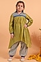 Featuring a green bandhej kurta for girls in cotton and cotton silk base with an embellished yoke. It is paired with printed salwar pants. Elevate your look for any festive occasion by accessorizing this designer set with cute hair accessories.