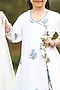 Featuring a white kurta in cotton base with block print. It is paired with contrasting blue sharara pants and a net dupatta.