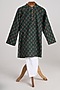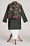 Featuring a bottle green nehru jacket for boys in glazed cotton base with floral print. It is paired with a cotton kurta and glazed cotton pyjama pants. Accessorise it with mojris and a watch for a stylish ensemble, ideal for ceremonial events or any festive occasion.