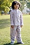 Featuring a grey shirt in cotton base with scooter block print. It is paired with matching pants.