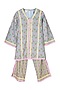 Light Blue Cotton Block Printed Kurta Set For Girls