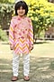 Pink Printed Bundi Jacket With Kurta Set For Boys