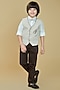 Featuring a beige waistcoat for boys in cotton base with embroidery. It is paired with a white shirt, moss green trousers and a bowtie. Perfect for birthday parties, family gatherings, or daytime?celebrations.