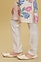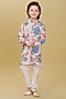 Featuring a beige kurta for boys in cotton base with floral print. It is paired with cream pants. Accessorise it with pair of mojaris and a watch for a stylish ensemble, ideal for festive occasions or sangeet ceremony.