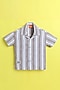 Featuring a beige and white shirt for boys in organic cotton base with stripe print. It is paired with a black t-shirt and shorts. Accessorise it with shoes and a watch for a stylish ensemble, ideal for playdates or vacation outings.