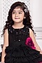 Featuring a black dress for girls in net base with floral and sequins embroidery. Accessorize it with matching hair accessories and sandals for a stylish ensemble, ideal for any festive occasion or birthday party.