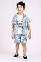 Blue Cotton Blend Printed Co-Ord Set For Boys