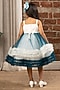 Blue Net Floral Embellished Spaghetti Strap Dress For Girls
