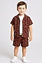 Brown & Black Cotton Blend Geometric Printed Co-Ord Set For Boys