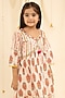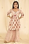 Featuring a cream kurta for girls in cotton base with floral print. It is paired with floral printed sharara pants. Style it with sandals and hair accessories for a haldi ceremony or festive occasion.