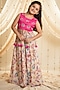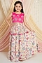 Featuring a pink top for girls in muslin cotton base with sequins floral embroidery. It is paired with cream printed palazzo pants. Accessorize it with matching hair accessories and sandals for a stylish ensemble, ideal for birthday parties.