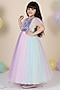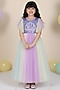 Featuring a lilac paneled gown for girls in mesh base with pearl embellishments. Accentuate it with cute hair accessories or sandals for birthday parties or festive occasions.
