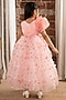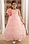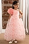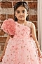 Peach Net 3D Floral Embellished One-Shoulder Ruffled Gown For Girls