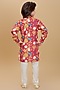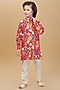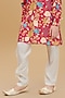 Featuring a red kurta for boys in cotton base with floral print and a mandarin collar. It is paired with cream pants. Accessorise it with pair of mojaris and a watch for a stylish ensemble, ideal for festive occasions or sangeet ceremony.