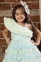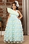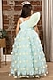 Sky Blue Net 3D Floral Embellished One-Shoulder Ruffled Gown For Girls