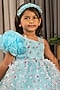 Sky Blue Net 3D Floral Embroidered One-Shoulder Dress For Girls