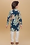 Featuring a teal kurta for boys in rayon base with floral print. It is paired with cream pants. Accessorise it with pair of mojaris and a watch for a stylish ensemble, ideal for festive occasions or sangeet ceremony.