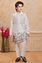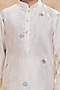 Featuring a white kurta in cotton silk base with embroidery. It is paired with white pyjama pants. Accentuate it with pair of mojaris and a watch for a festive occasion or pooja ceremony.
