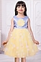 Yellow Tissue & Net Floral Applique Work Dress For Girls