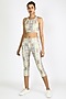 Featuring white capri pants in polyester base with abstract print. This contains only one piece.