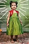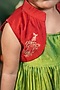Green & Red Handloom Cotton Silk Machine Embroidered Jacket Dress For Girls
