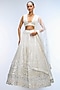 Featuring an ivory illume lehenga in pure silk, organza and net base with cutdana, sequins, french-cut and moti embellishments. It is paired with an embellished blouse having a deep-neckline and a dupatta. Accentuate it with polki jewellery, a polti bag and block heels for a wedding or engagement ceremonies.
