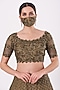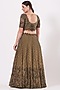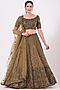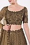 Featuring an olive green lehenga in silk organza base with beads and sequins embroidery. It is paired with a matching blouse having cutwork sleeves, a net dupatta, and a mask.