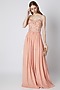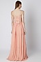 Featuring a peach dress in royal georgette base with glass beads and sequins embroidery. It has a gathered drape and shantoon underlining.