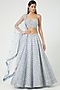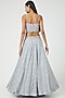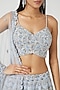 Featuring a sky blue lehenga in organza base with silver sequins and beads embroidery. It is paired with a matching embroidered blouse and a dupatta.