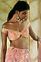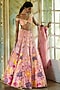 Featuring a baby pink lehenga in organza base with floral embroidery. It is paired with a matching chanderi off-shoulder blouse and a bunches dupatta having mirror border.