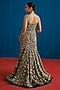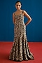 Featuring a black gown in organza base with embroidery. Accentuate it with dangler earrings, a clutch and block heels for a complete look.