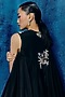 Featuring a black sleeveless mini dress in organza base with floral applique embroidery and bubble hem. Accentuate it with statement earrings and stilettos for evening soirees, date nights or cocktail parties.