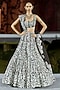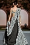 Mishru presents a black lehenga in organza base with floral detail. It is paired with a corset blouse and a dupatta. Accentuate the look with muted block heels and a sleek gold ear cuff for a majestic presence at the sangeet.