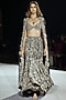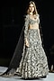 Mishru presents a black fish-cut lehenga in tulle and raw silk base with floral detail. It is paired with a corset blouse and a cape. Accentuate the look with muted block heels and a sleek gold ear cuff for a majestic presence at the sangeet.