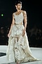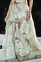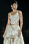 Mishru presents a champagne overlay skirt in tulle and sequins base. It is paired with a sequins corset having floral detail. Accentuate it with metallic block heels and contemporary jhumkas to bring a daring twist to traditional sangeet styling.