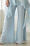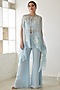 Featuring a cloudy blue cape in organza base with floral work. It is paired with matching chanderi silk crop top having hexagon embroidery and pants.