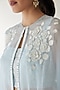 Cloudy Blue Organza Embroidered Cape Set