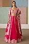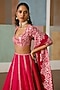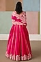 Featuring a fuchsia lehenga in organza base with embroidery. It is paired with a tulle blouse and a silk dupatta. Accentuate it with dangler earrings and heels for a wedding or engagement ceremony.