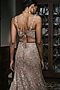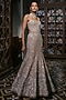 Mishru features a mesmerizing Gold Gown that captivates with its elegance. The eye-catching gown is crafted in tulle with metallic and floral embroidery. Accentuate the designer gown with soft curls, swarovski or pearl jewellery, embellished heels and a clutch for regal cocktail look. Perfect for sangeet nights, cocktail ceremonies or receptions.
