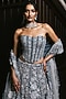 Grey Tulle Metallic & Floral Embroidered Lehenga Set