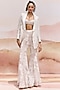 Featuring an ivory cluster blazer in organza base. It is paired with a bustier and pants. Accentuate it with zircon jewellery, an embroidered clutch and wedges for a graceful ethnic look, perfect for cocktail, sangeet or evening functions.