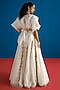 Featuring an ivory skirt in organza base with embroidery. It is paired with an organza pouf top, a bustier and a belt. You can style this as a set or separates with statement earrings and heels for festive occasions and wedding ceremonies.