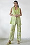 Featuring a lime green blazer in organza base. It is paired with a matching crop top and pants.