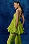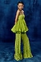 Featuring a lime peplum in organza and tulle base with embroidery and bubble hem. It is paired with embroidered pants. Accentuate it with zircon jewellery, soft curls and block heels for festive occasions or sangeet ceremony.