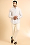 Featuring a cloudy blue shirt kurta in dupion base with abstract wildflower detail. It is paired with off-white pants. Style it with mojaris for a festive occasion, cultural event or family gathering.