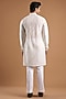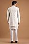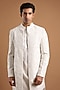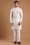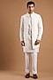 Featuring an ivory indowestern jacket in silk base. It is paired with a kurta and pants. Accentuate it with sleek black loafers or embroidered juttis and statement sunglasses for a sharp ensemble, ideal for cocktail evenings, sangeet nights or contemporary wedding receptions.