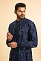 Featuring a navy blue shirt kurta in dupion base. It is paired with pants. Style it with kolhapuri sandals for a festive occasion, cultural event or sangeet ceremony.