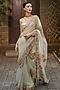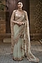 Mint Green Tulle Floral Embroidered Jacket Saree Set