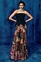 Featuring a black corset in organza base. It is paired with multi-colored geometric embroidered pants. Accentuate it with statement earrings and stilettos for evening soirees, date nights or cocktail parties.